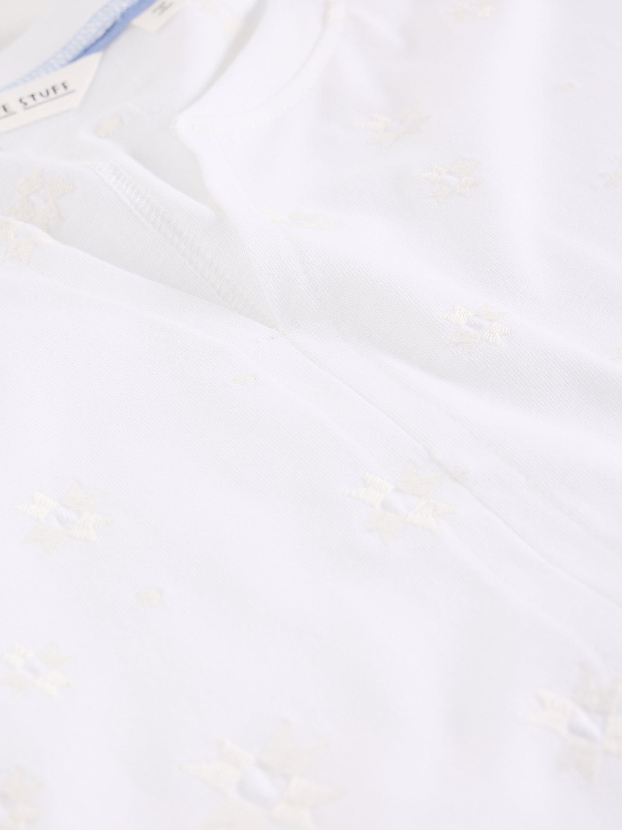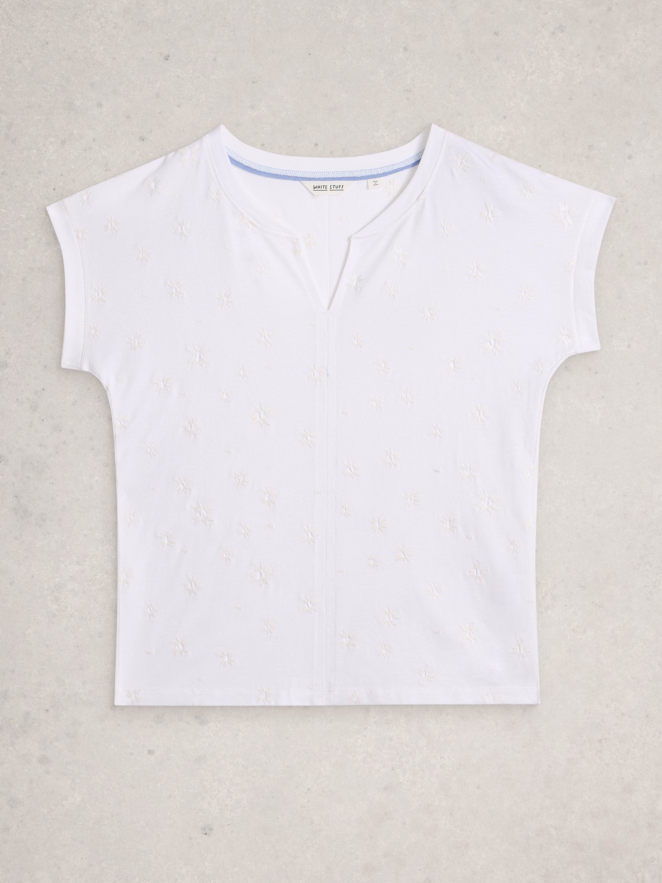 White Stuff's Nelly tee combines timeless style with understated detail. The notch neckline and relaxed fit deliver effortless comfort, while delicate embroidery adds a refined touch that elevates the classic t-shirt. Perfect for layering or wearing solo, this versatile piece works across seasons and occasions. A wardrobe essential that balances simplicity with subtle sophistication.