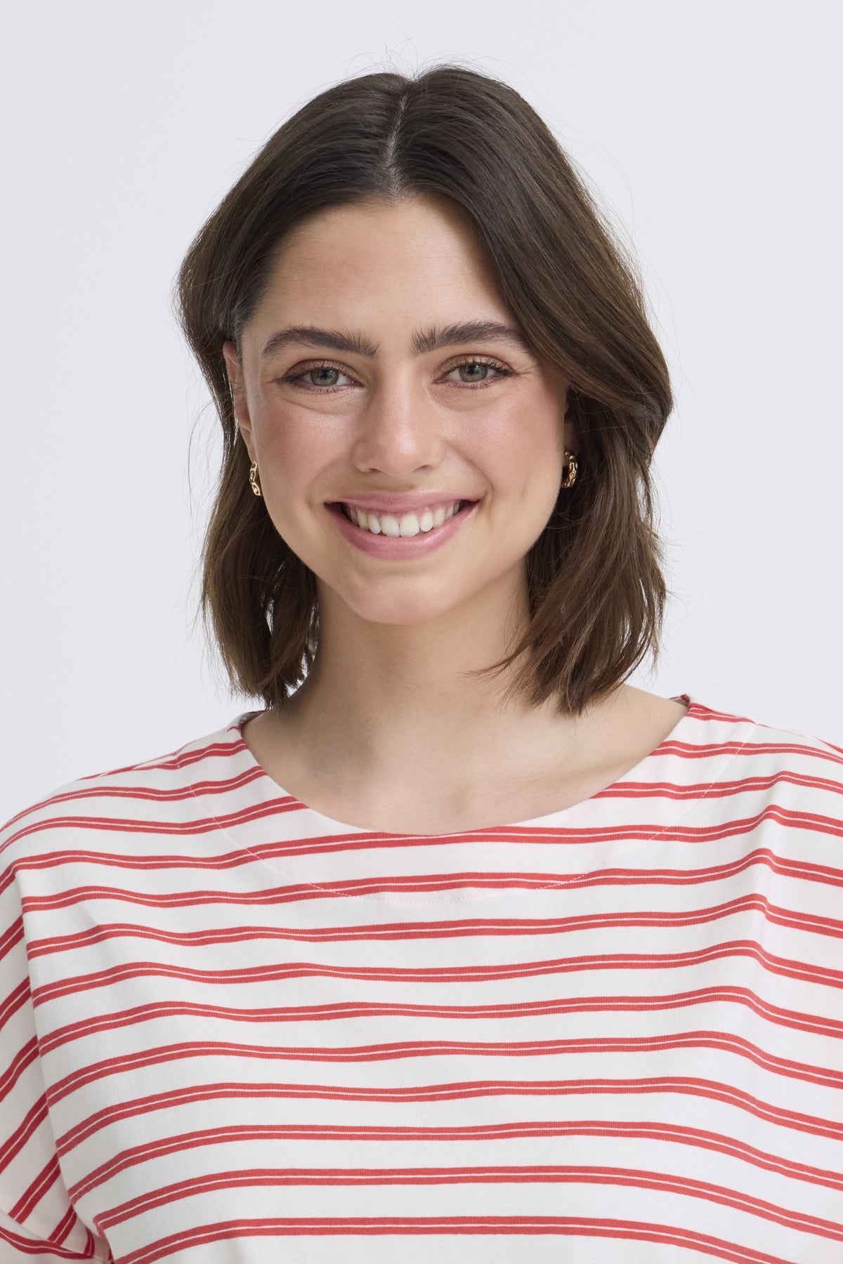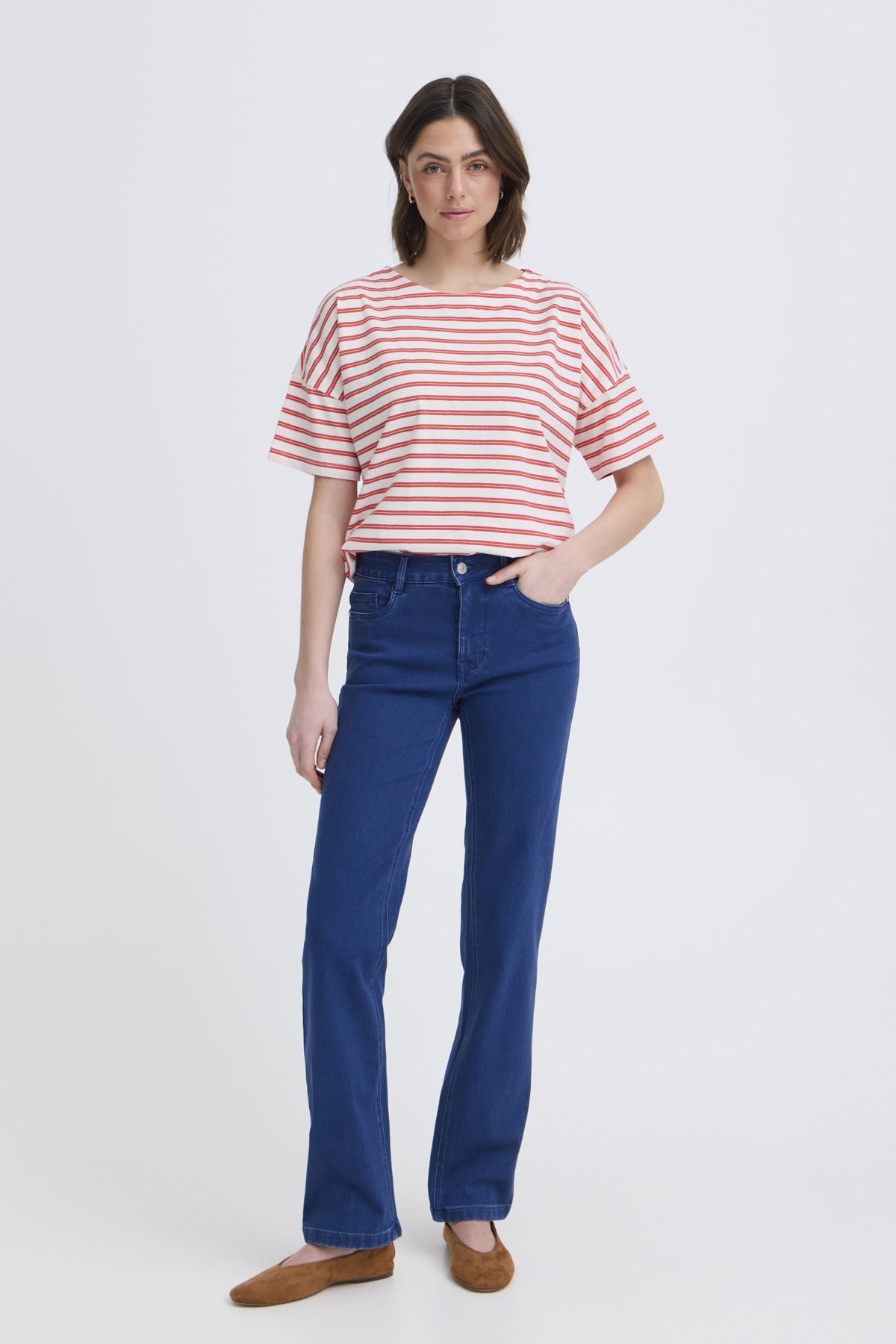 The Fransa Siva T-Shirt combines comfort with understated style. Crafted from a soft cotton-elastane blend, this half-sleeve striped tee offers the perfect balance of structure and stretch. Effortlessly versatile, it pairs beautifully with jeans for casual everyday wear or layered looks.