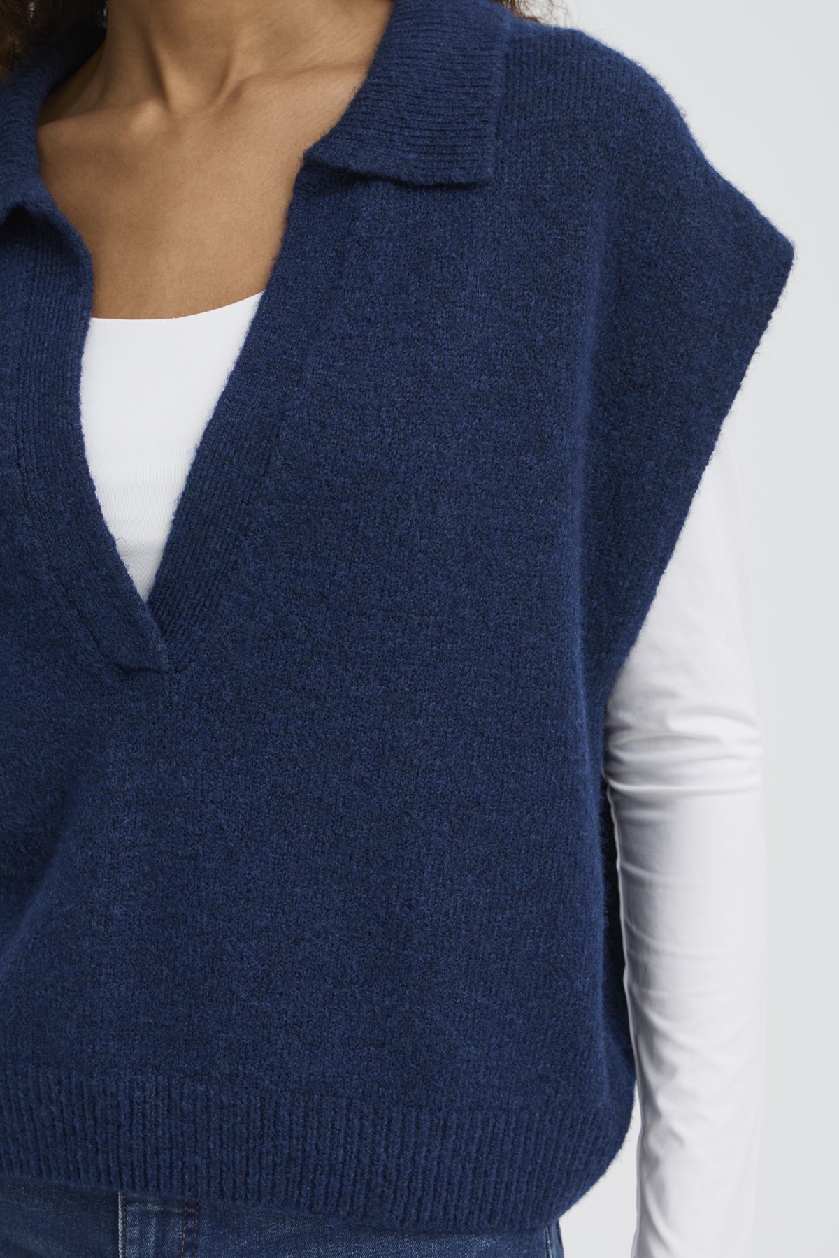 Elevate your layering game with this refined wool blend V-neck waistcoat. Crafted from a sumptuous wool blend, it features a classic collar and grown-on sleeves for a polished silhouette. The relaxed fit ensures effortless comfort without compromising on style, making it the perfect piece to layer over shirts or wear as a standalone statement. Versatile enough for both professional and casual settings, this waistcoat brings understated sophistication to any wardrobe.