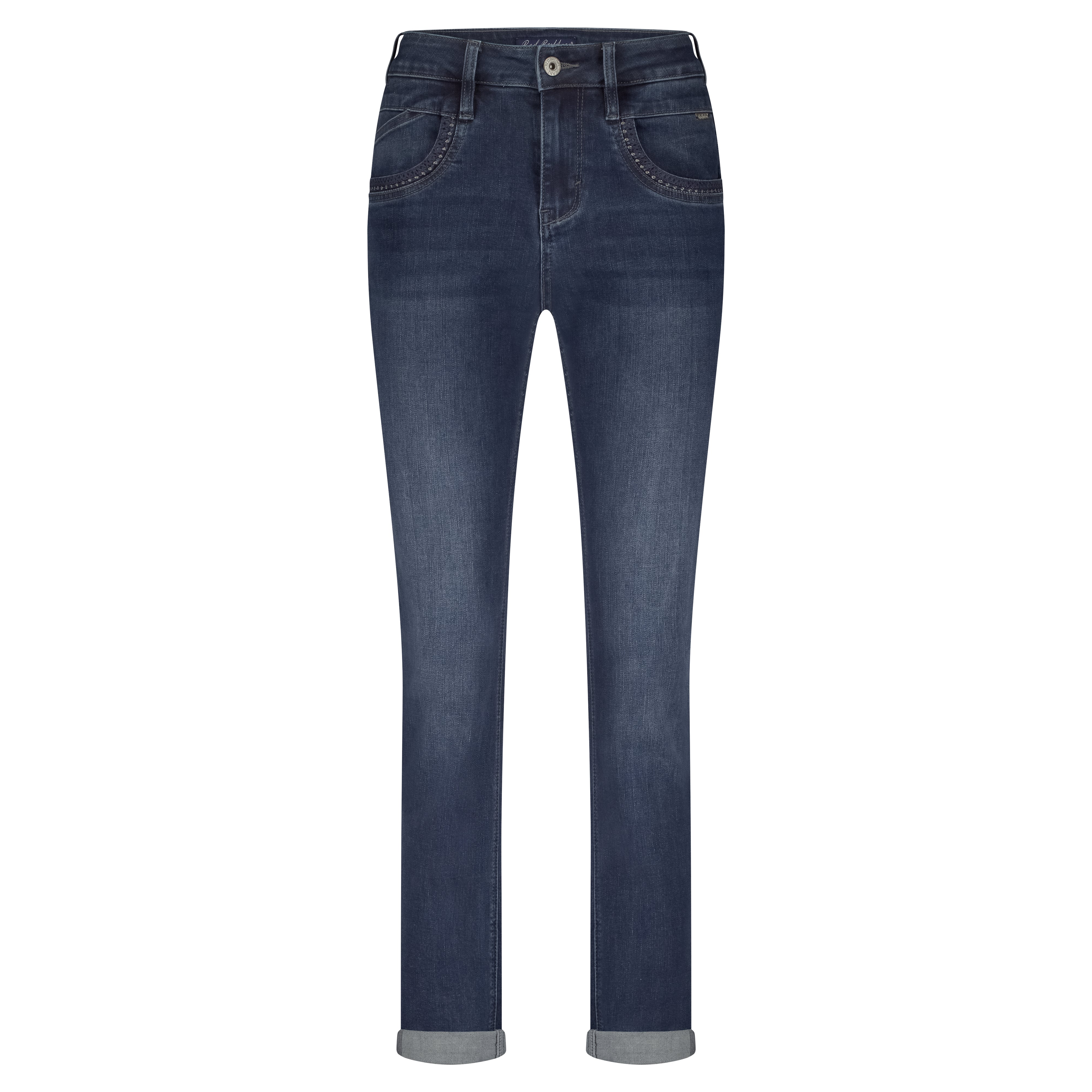 These Red Button Kate jeans feature a refined embroidered pocket detail crafted with silver thread, adding a subtle touch of sophistication. Designed with a straight leg and mid-rise fit, they offer a comfortable yet flattering silhouette suitable for everyday wear. The regular fit ensures ease of movement without compromising style, making these jeans a versatile addition to your wardrobe.