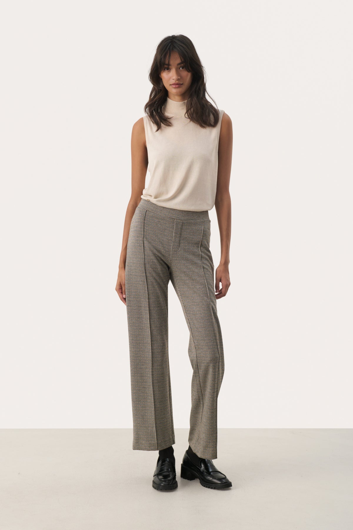 Enhance your professional wardrobe with the Part Two Pontas Trousers. The straight leg design and seam details create a polished, tailored look, while the elasticated waistband provides comfort throughout the day. Complete with a faux zip for a sleek touch.