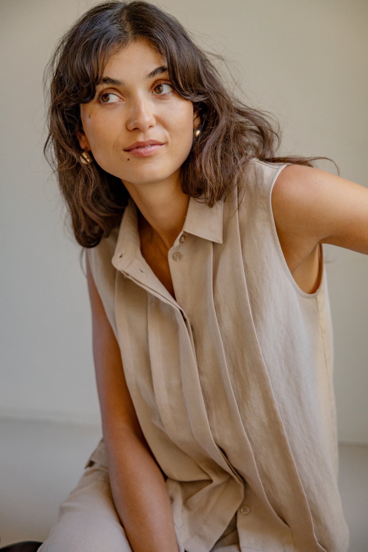 Elevate your wardrobe with the Fransa Adah Sleeveless Shirt, a versatile layering essential crafted from a luxurious blend of natural fibres. The breathable Lyocell and Viscose composition offers comfort and fluidity, while Nylon and Linen add durability and structure. Perfect paired with our fresh collection of matching sleeveless trousers for an effortlessly chic, coordinated look. Ideal for transitional seasons and sophisticated styling.
