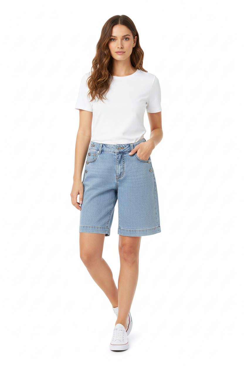 Red Button Bibette Short & Buttons Denim combines timeless style with everyday practicality. Crafted from lightweight denim with subtle stretch, this piece features distinctive front button detailing and functional pockets—the perfect wardrobe essential for effortless layering and versatile styling.